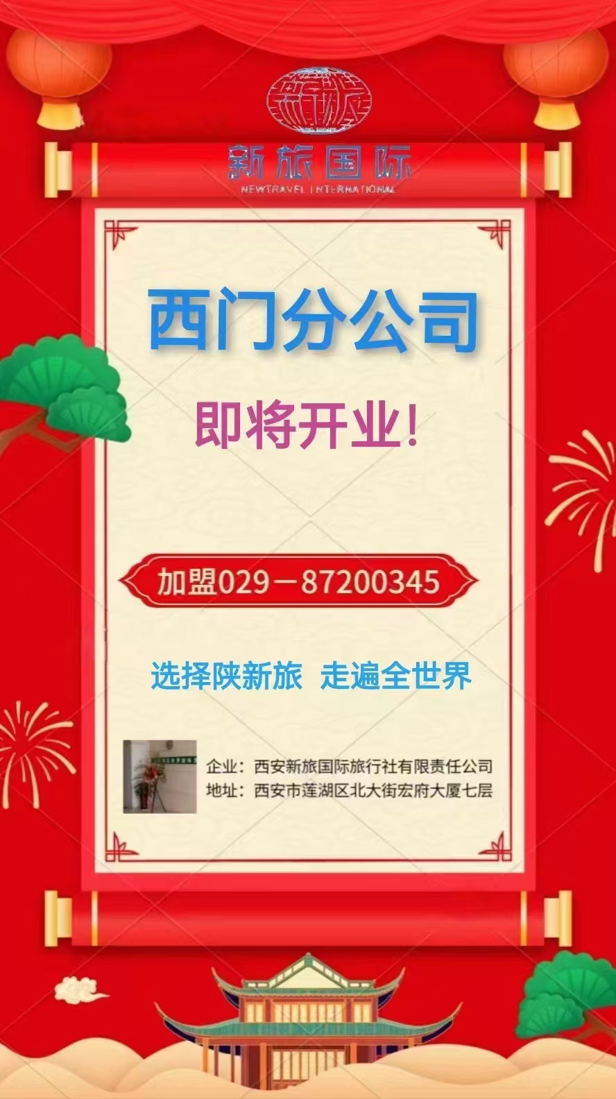 西安新旅國際旅行社有限責任公司西門分公司 即將開業(yè)