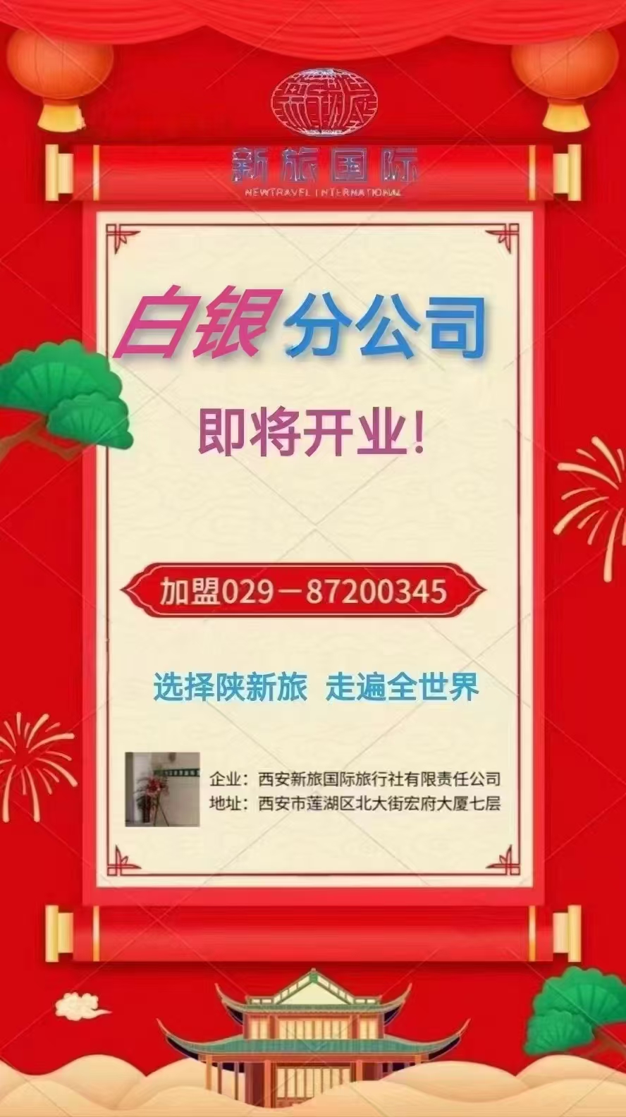 西安新旅國際旅行社有限責(zé)任公司白銀分公司 即將開業(yè)
