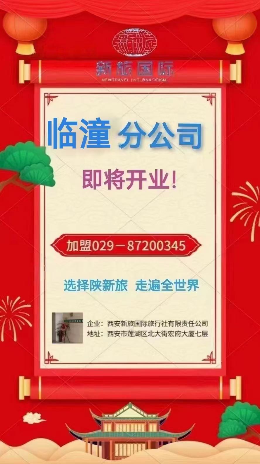 西安新旅國際旅行社有限責(zé)任公司臨潼分公司 即將開業(yè)