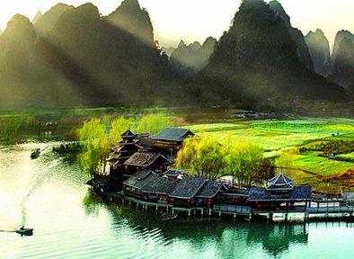 D3 早餐后游覽水中水,山中山,桂林山水第一灣美譽之稱“洞中九寨”【荔江灣】?瓷健⒆、玩水、看溶洞,是桂林山水山青、水秀、洞奇、石美的縮影;親近淳樸的大自然最美的水、最奇的山、溶洞瀑布;漓江最古老的捕魚、農(nóng)耕、讓你融入青山綠水大自然田園風(fēng)光之中后,【漓江風(fēng)光精華游】,(興坪碼頭上下船)欣賞兩岸奇山秀水,順流而下,極目遠望,如玉帶般蜿蜒奔流,峰峰繞繞,秀水迂回,如幅幅水墨畫呈現(xiàn)眼前,悠閑自在的倘佯在有中國“洋人街”之稱的【陽朔西街】,古青石板路上,欣賞具有少數(shù)民族特色的手工藝制品:蠟染、刺繡;慢慢品味西街獨特的酒吧文化,